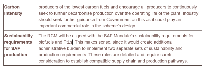 The RCM will be available for all SAF production technologies, other than HEFA-based biofuels. This includes power-to-liquids (“PtLs”) (i.e., e-fuels) as well as recycled carbon fuels (“RCFs”) and non-HEFA biofuels. To be eligible for RCM support, the SAF must comply with detailed sustainability requirements, which the Government intends to align with those under the SAF Mandate.