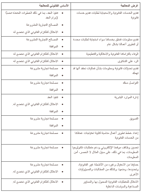 بصفتنا شركة محاماة، فإننا نتلقى بشكل منتظم معلومات شخصية في سياق تقديم خدماتنا وضمن أنشطتنا المهنية. فعلى سبيل المثال، قد نجمع معلومات شخصية في الحالات التالية: